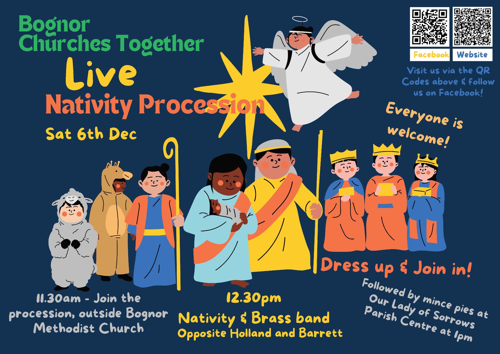 Bognor Churches Together will be presenting a ‘live nativity’ event in the heart of the town centre on Saturday 6th December at 11.30am. This heartwarming celebration will unite members of local churches and the broader community, offering a unique and engaging way to commemorate Christmas.