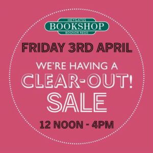 We need to make some space for some of our newer pre-loved stock and new titles, so will be holding another a ONE DAY CLEAREANCE SALE on Friday 3rd April (Good Friday) from 12noon till 4pm.There will be a large selection of kids’ books, fiction, non-fiction and reference books all with ‘clearance’ prices, as well as our regular stock of pre-loved and new books , so why not pop along and grab yourself a great summer read.