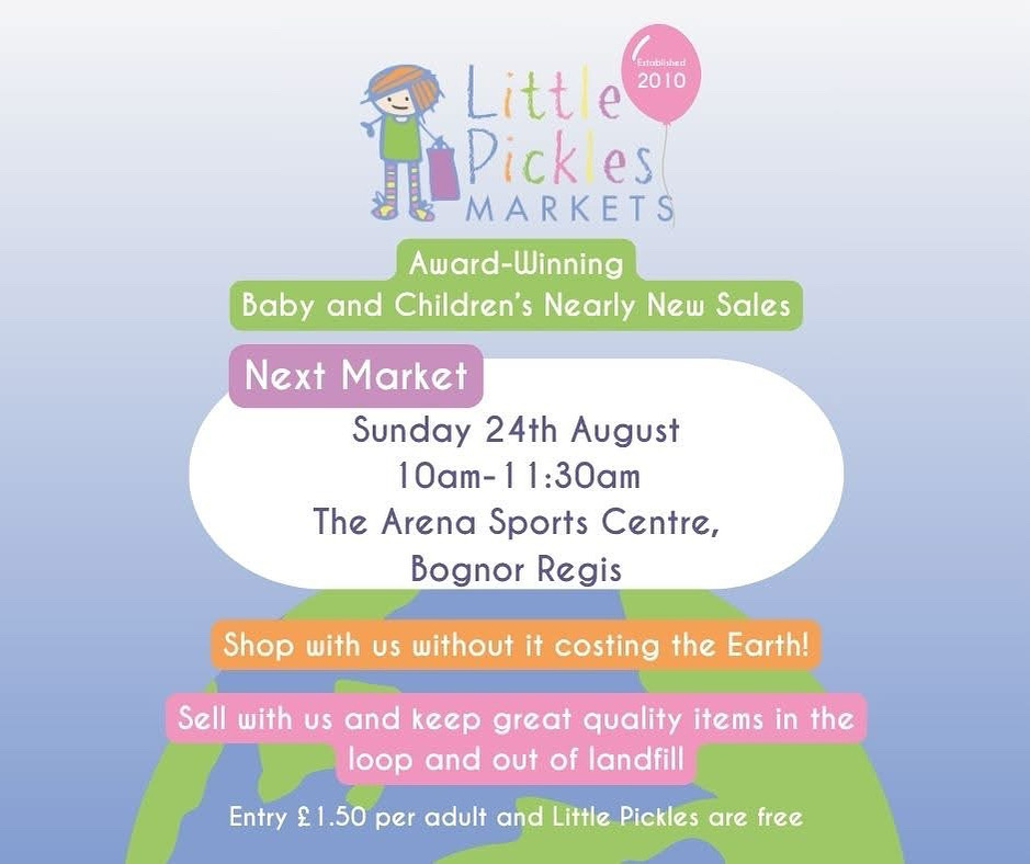 Little Pickles Markets are so excited to return to Bognor Regis this August! Come and join us at our nearly-new baby and children’s sale where you can find 1000s of great quality items at a fraction of the retail price! Each sale is unique and you will find a variety of items from clothes, toys, books and equipment for babies to 5 year olds. Find us at: The Arena Sports Centre, Westloats Lane, Bognor Regis Sunday 24th August 10am-11:30am Got good-quality bits to get rid of? Then book a table to sell and keep 100% of your earnings on the day. Table bookings are now open, a table will be provided for you at the venue. Pre-loved table- £14 Business table- £18 Book your sellers table here: