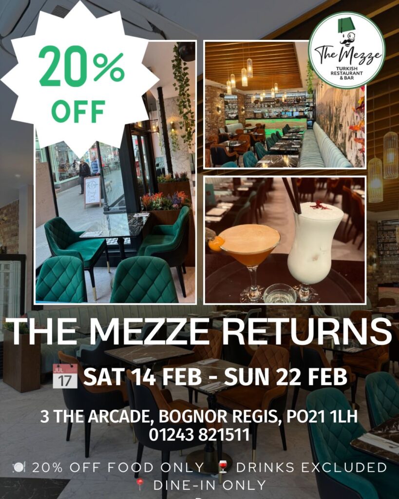 Welcome to The Mezze 💚 We’re open, settled, and quietly working on a few exciting touches behind the scenes. As always, we’re focused on great food, a warm atmosphere, and looking after our guests properly. Thank you to everyone who’s been supporting us — we can’t wait to share it all with you 👀✨ 📍3 THE ARCADE, BOGNOR REGIS, PO21 1LH 📱 01243 821511 🕰️ Monday – Sunday 🥡 Take-Away available